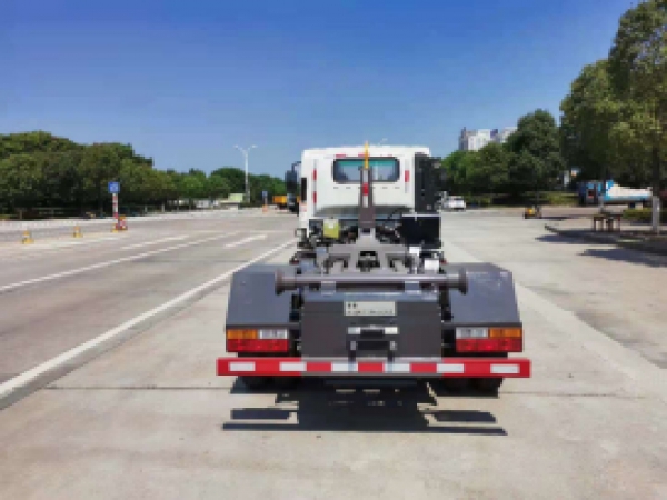 ★勾臂垃圾車(chē)的系統(tǒng)由拉臂回路﹑滑臂回路、車(chē)廂回路、鎖緊回路和支撐回路組成,集裝載、運(yùn)輸、自卸于一身,無(wú)需**設(shè)備。