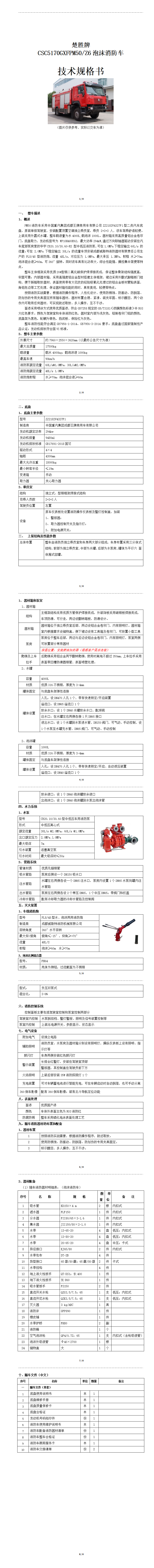 楚勝牌 重汽豪沃PM50/Z6 4×4 泡沫消防車(chē)